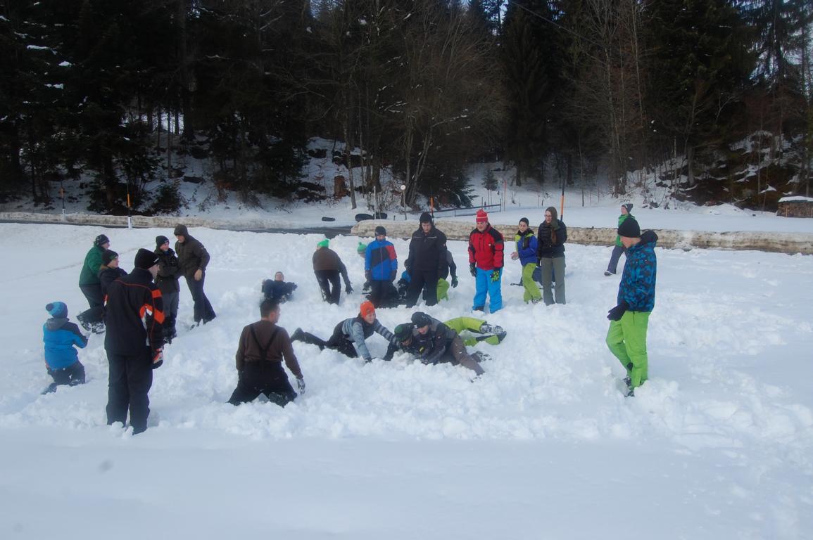 Der nächste Tag startete - nach einem ausgiebigen Frühstück - wie der vorherige endete. Doch nach dem Mittagessen war Schluss mit lustig, weiter ging es mit den Outdoorspielen von "Schlag den Jugendwart", darunter das obligatorische 'Landjäger suchen'. Danach ging es den restlichen Mittag auf die Rutschbahn, auch eine ordentliche Schneeballschlacht durfte natürlich nicht fehlen. Am Abend wurden dann noch die letzten Spiele bei ,,Schlag den Jugendwart" gespielt, bei denen nun Theorie (Wer weiß mehr) und Praxis gleichermaßen auf dem Programm standen und nach denen dann feststand, dass die Jugendwarte im Gesamtergebnis knapp vorn lagen und das Spiel somit für sich entschieden hatten - ein Dank geht hier an die Organisatoren. Der restliche Abend wurde dann wieder mit Gesellschaftsspielen verbracht. Der Sonntagmorgen stand dann ganz im Zeichen des Aufräumens, bevor es dann wieder zurück in die Heimat ging.