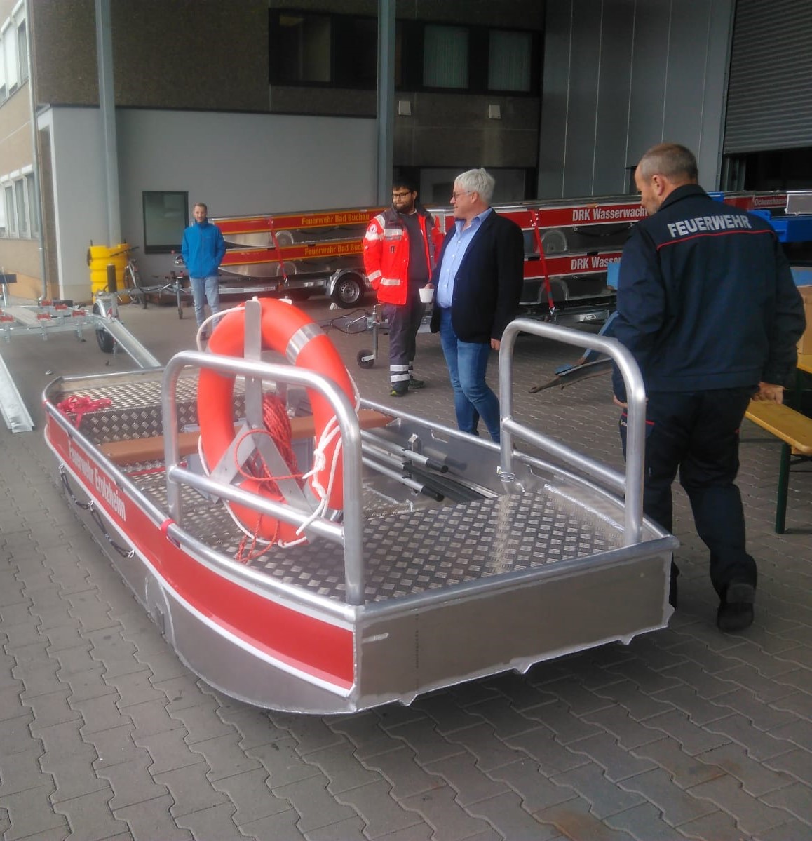 Am 25.09.2020 startete eine Kolonne von Feuerwehren sowie das DRK des Landkreises in Richtung Andernach. Hier angekommen, gab es eine Stärkung nach der langen Fahrt, bevor eine Einweisung für die mitgereisten Kameraden stattfand. Überführt wurden die Boote nach Bad Buchau. Hier fand am 29.09.2020 die offizielle Übergabe durch den Landrat Dr. Heiko Schmid statt. Anwesend waren hier Vertreter des Landkreises sowie der Feuerwehren und des Deutschen Roten Kreuzes, ebenfalls anwesend war die Presse.