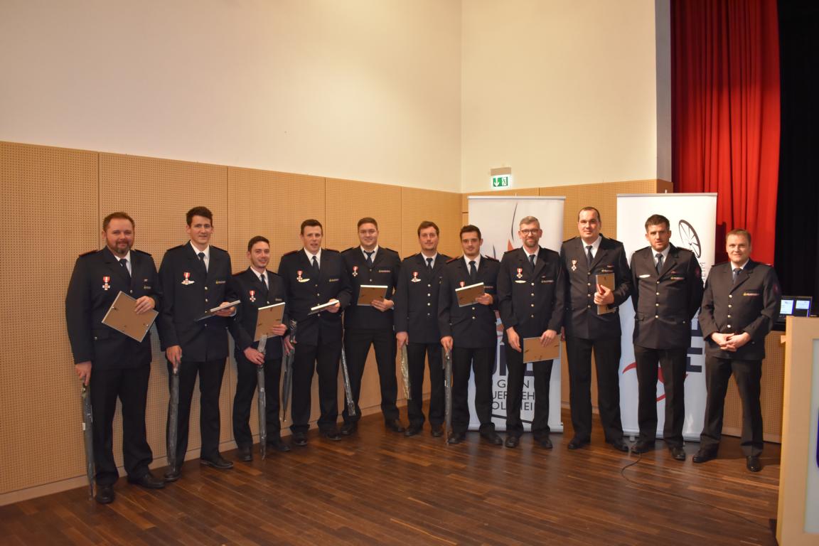 Es folgten Ehrungen für 15 Jahre aktiven Feuerwehrdienst für: Martin Högerle, Daniel Kirchenmaier, Andreas Hirsch, Daniel Kunz, Markus Maier, Alexander Kattner sowie Manuel Ehrhart.