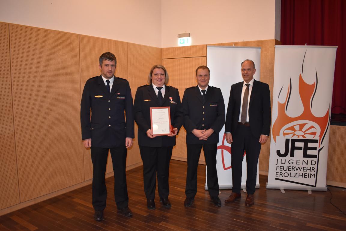 Bei der folgenden Ehrung konnte Silvana Hoppe das Feuerwehr Ehrenzeichen in Silber für 25-jährigen Einsatzdienst überreicht werden.