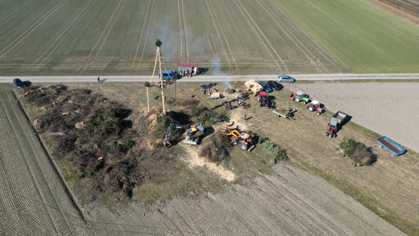 Am Samstagmorgen war alles soweit vorbereitet und die Funkenstange musste nur noch aufgestellt werden. Anschließend wurde das Material, welches sich bereits alles auf dem Funkenplatz befand, Stück für Stück aufgeschichtet. Somit war der Funken so gut wie fertig, sodass am Sonntag nur noch letzte Feinheiten wie Stroh auftragen oder das Ausschneiden der Höhle auf dem Plan stand.