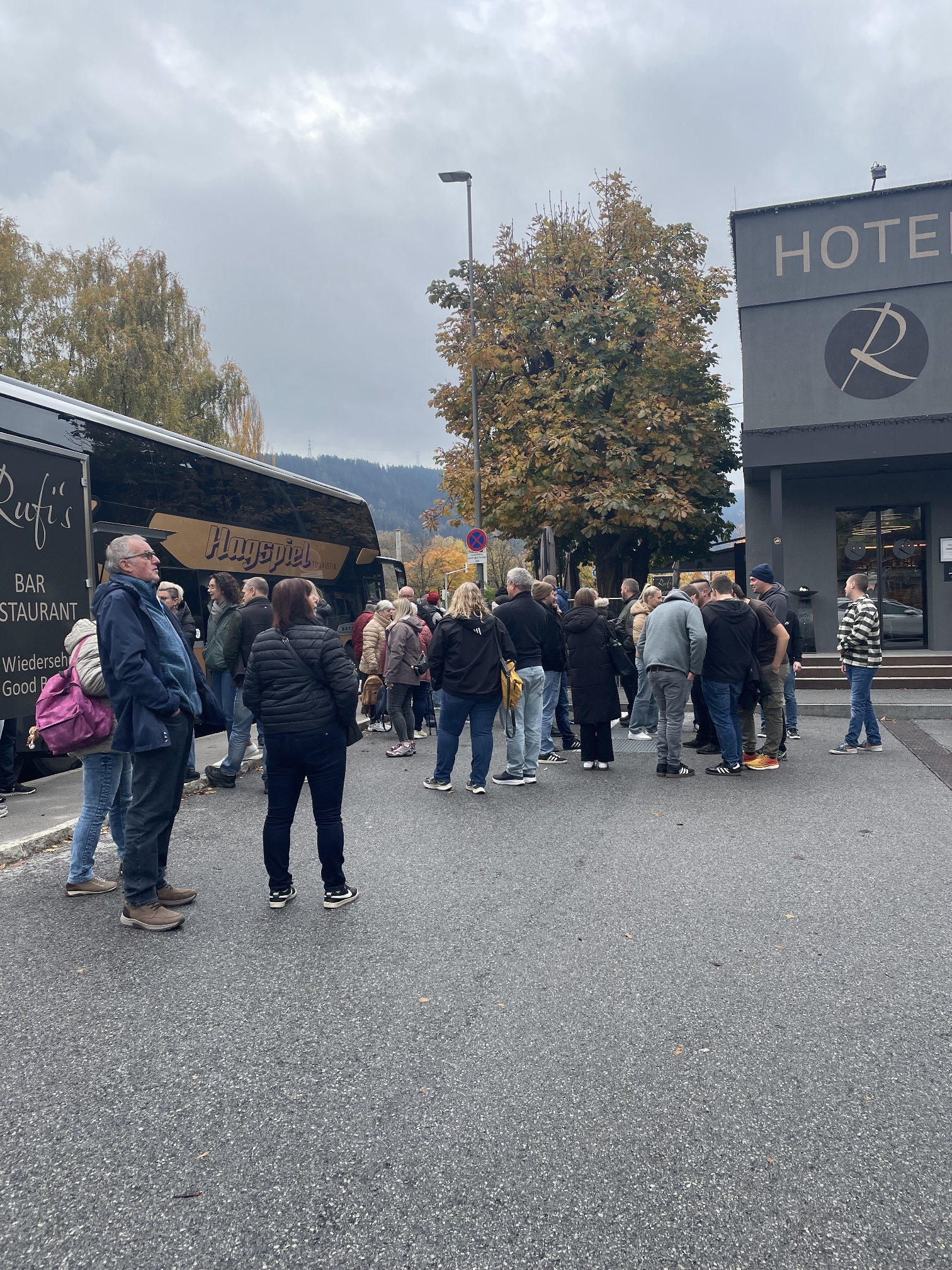Am Wochenende vom 24.10. – 26.10.2025 fand ein mehrtägiger Ausflug unserer Feuerwehr statt. Am Freitagnachmittag fand sich die 60-köpfige Reisegruppe am Gerätehaus ein. Nachdem das ganze Gepäck und die Getränke verladen waren, konnten wir pünktlich um 14 Uhr mit einem Doppelstock Bus starten. Die Fahrt erfolgte über die A7 Füssen weiter über den Fernpass nach Innsbruck. Angekommen am Hotel erfolgte schnell das einchecken, bevor man sich wieder zum gemeinsamen Abendessen traf. Hierzu machte die Reisegruppe einen gemütlichen Abendspaziergang in die Innenstadt zum Stiftskeller. Gut gespeist machte sich die jüngere Generation anschließend auf, um das Nachtleben von Innsbruck zu erkunden und einige nahmen noch an der Hotelbar einen Absacker zu sich.