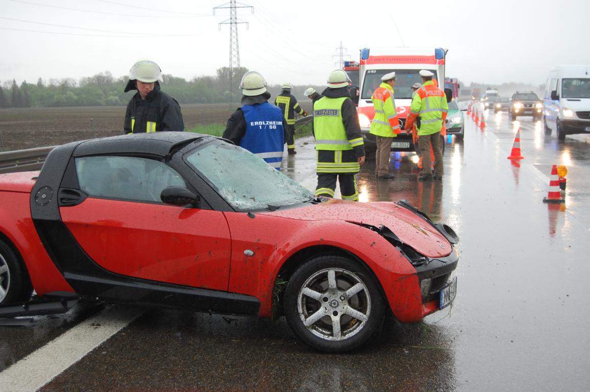Wir wurden heute morgen mit einem Vollalarm auf die Autobahn A7 gerufen. Ein Pkw war alleinbeteiligt vermutlich aufgrund Aquaplaning ins Schleudern geraten und prallte dann gegen die rechte Schutzplanke. Die allein im Fahrzeug sitzende Frau war bei unserem Eintreffen noch in ihrem Auto. Wir unterstützten den Rettungsdienst beim Befreien der Person, in dem wir das klappbare Dach des Pkw entfernten. Weiter stellten wir den Brandschutz sicher, richteten eine Sperrung der rechten Fahrspur ein und säuberten die Fahrbahn. Nach Rücksprache mit der Autobahnpolizei konnten dann zeitnah wieder einrücken.