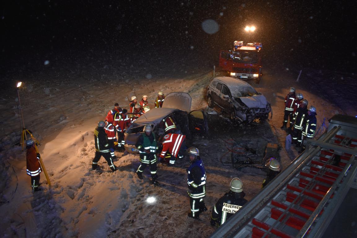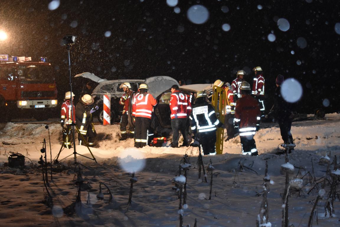Zu einem schweren Verkehrsunfall wurden wir am Abend des 17. Februars zusammen mit der Feuerwehr Tannheim alarmiert. Laut Meldung der Integrierten Leitstelle Biberach waren zwei Fahrzeuge an dem Unfall beteiligt, insgesamt fünf Personen verletzt, davon eine Person eingeklemmt.