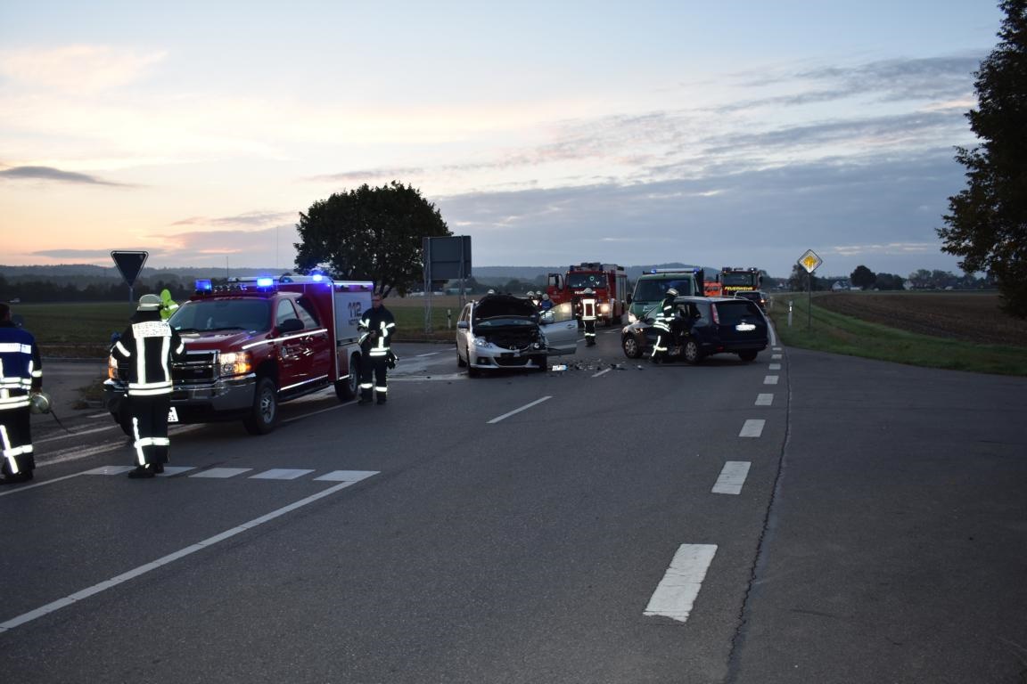 Zusammen mit der FF Kirchberg wurden wir heute morgen zu einem Verkehrsunfall zwischen Sinningen und Balzheim alarmiert.