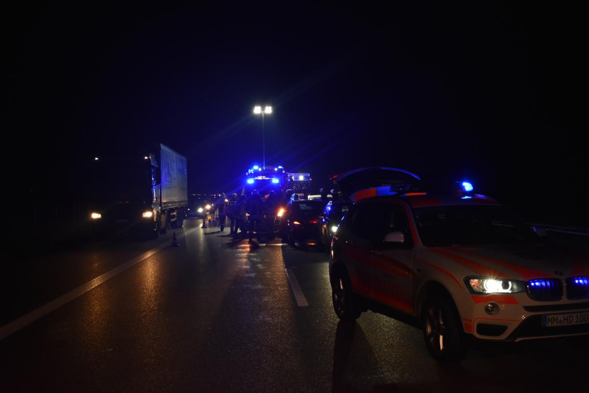 Zusammen mit der Fw Altenstadt wurden wir zu einem Verkehrsunfall auf die BAB 7 zwischen den Anschlußstellen Dettingen und Berkheim alarmiert.