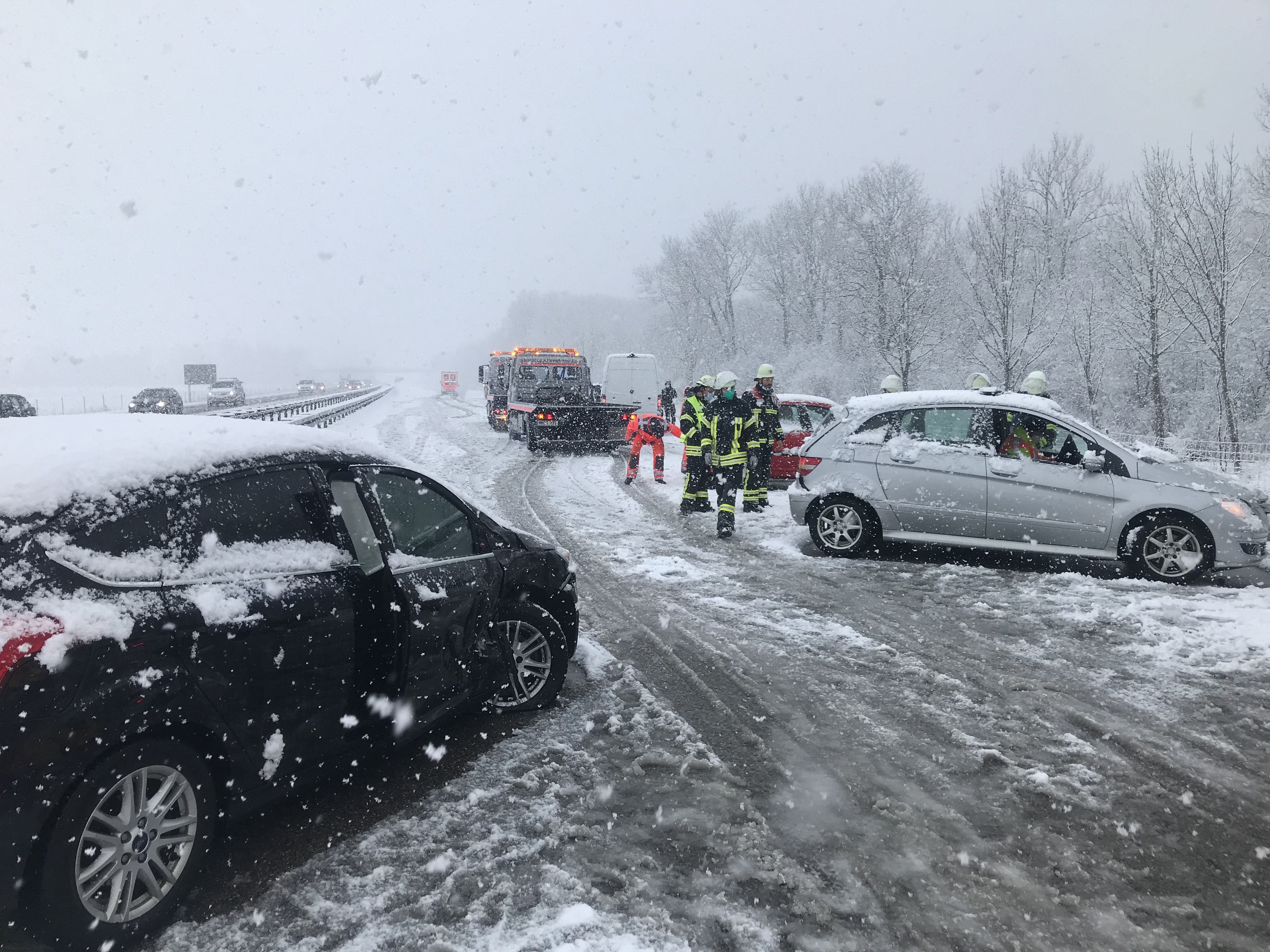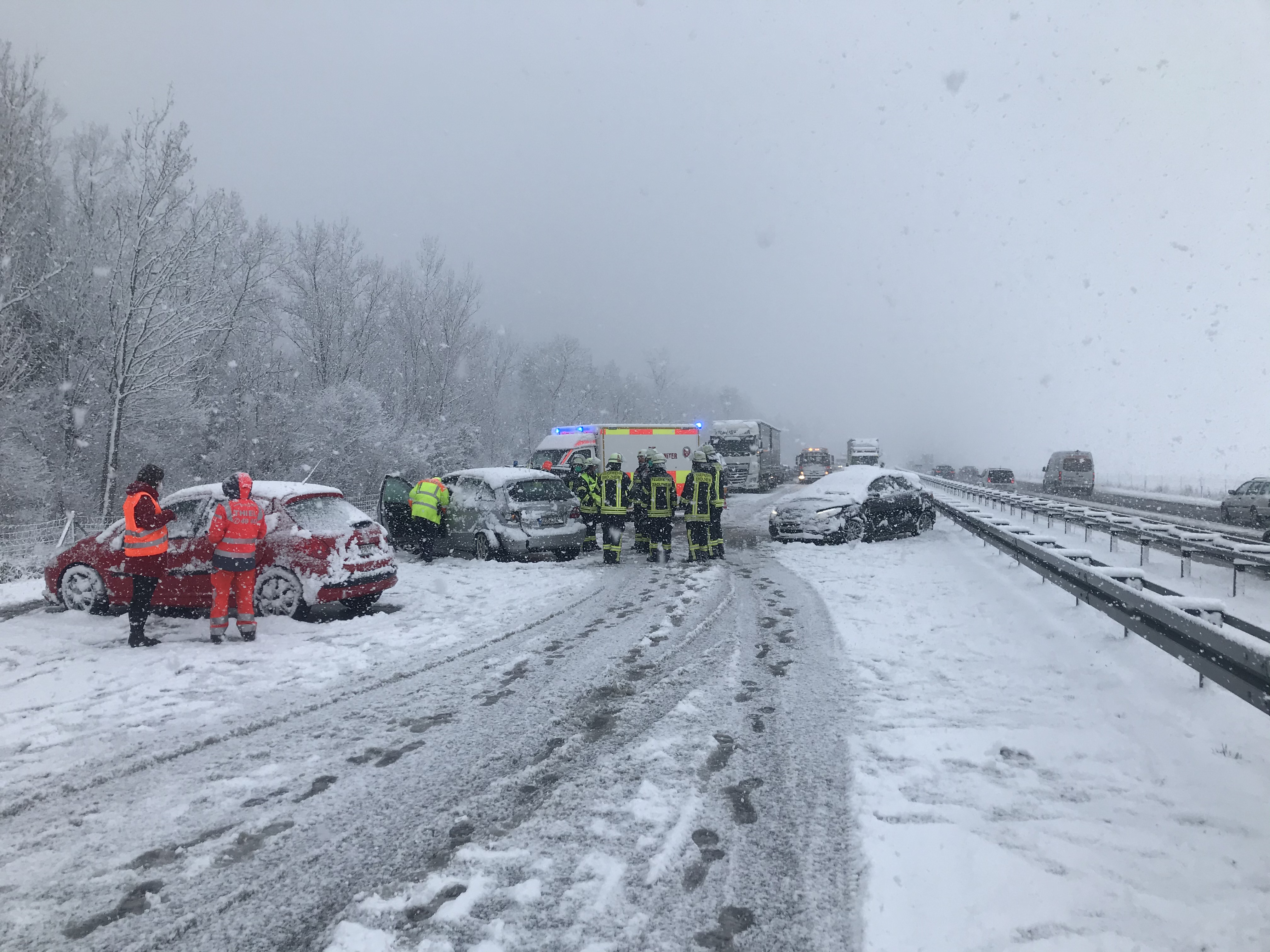 Plötzlich einsetzender Schneefall wurde 4 Pkw Fahrern auf der A7 heute Nachmittag zum Verhängnis . Diese rutschten auf schneeglatter Fahrbahn ineinander .