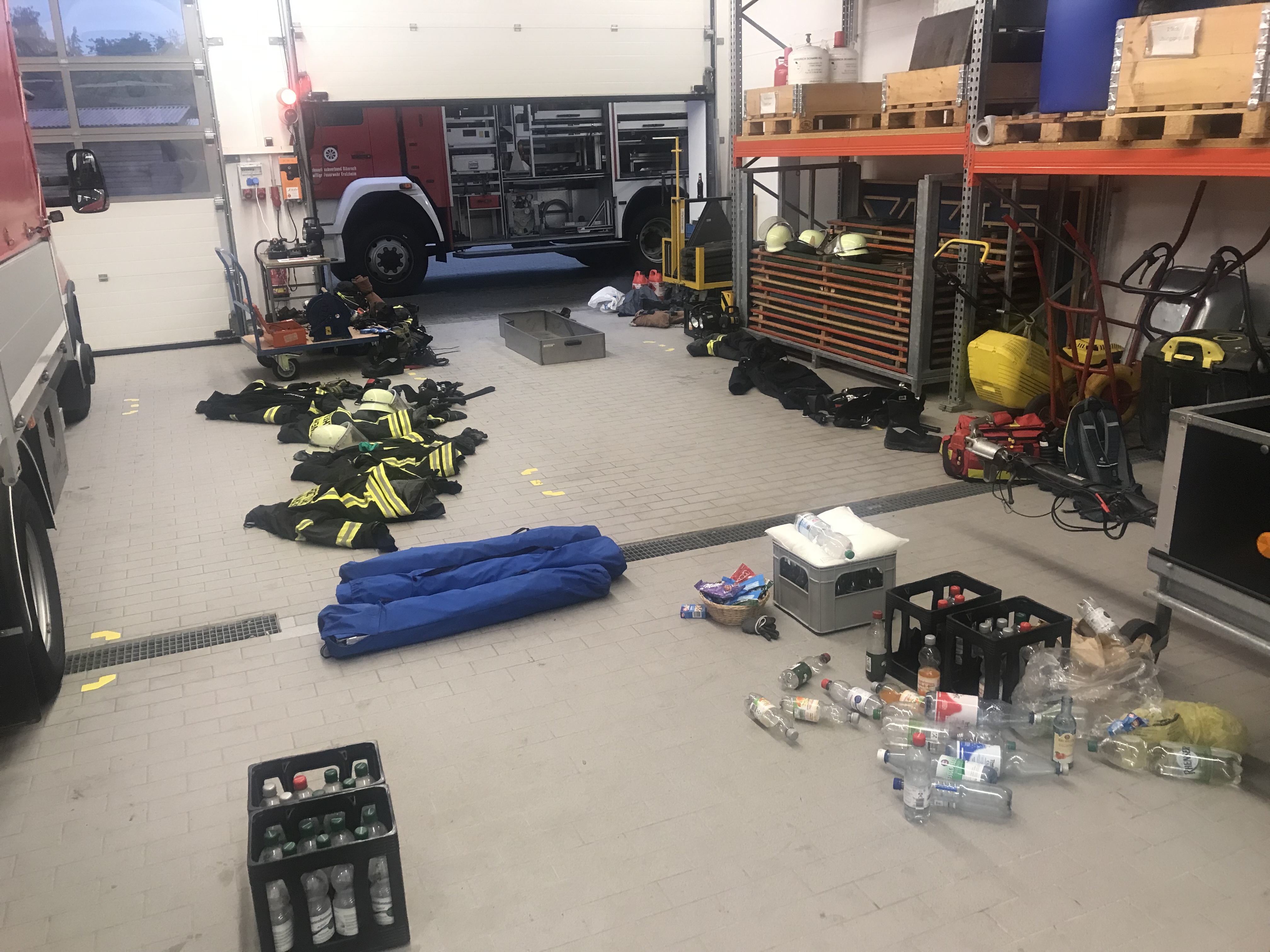 Bei Ankunft wurde ein Stellplatz zugeteilt, anschließend konnte sich jeder in der Einkaufspassage ein Nachtquartier aufbauen und noch eine Kleinigkeit essen. Am frühen Morgen wurden wir mit unserem Verband dann nach Ahrweiler / Sinzig verlegt und jeder Zug einem Unterabschnitt zugeteilt .
