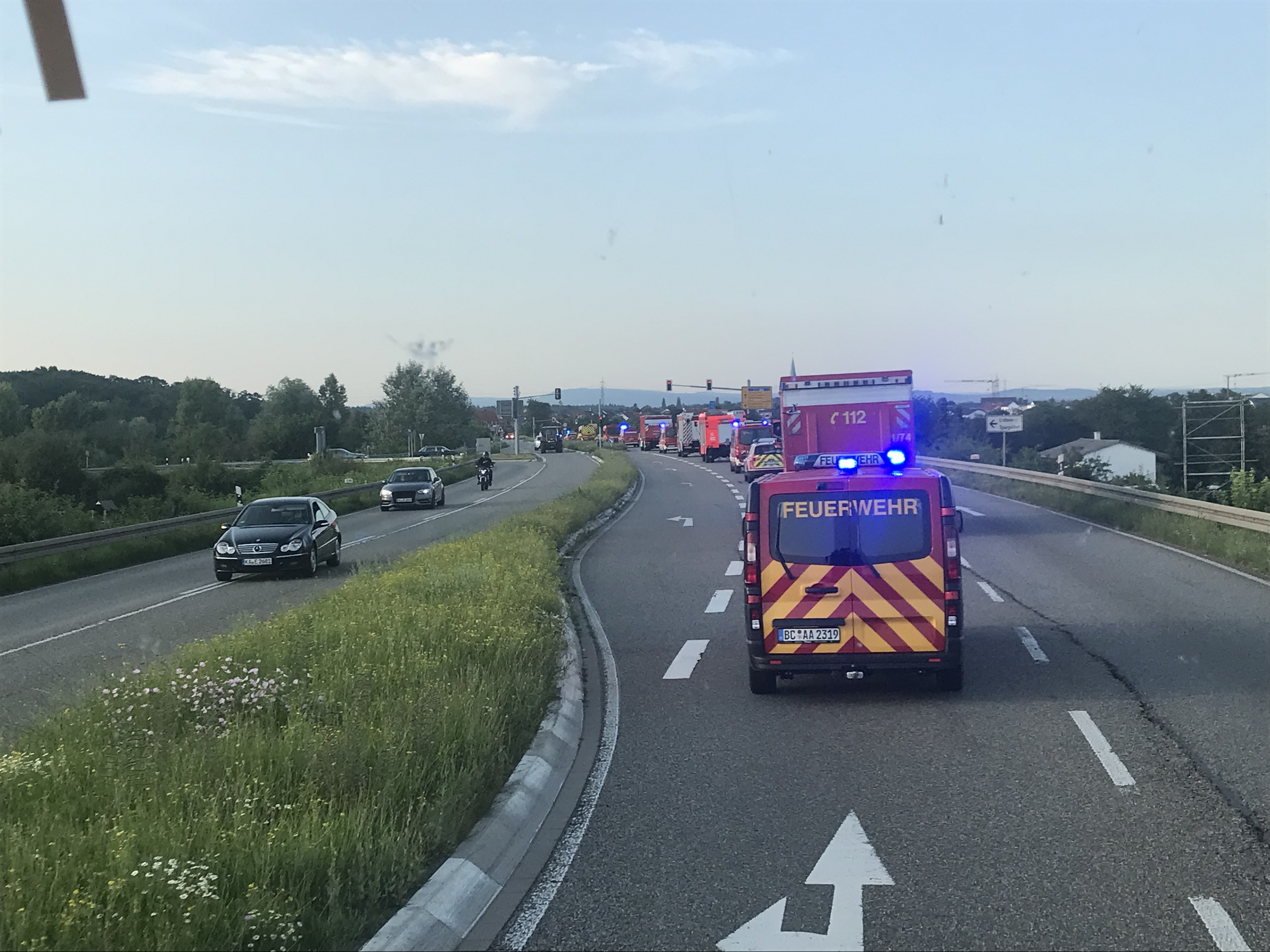 Unsere Kräfte erfuhren ca. 1,5 Stunden vor Abfahrt von dem Einsatz. Mit unserem Rüstwagen sowie dem Mannschaftstransportwagen und 8 Mann Besatzung fuhren zum Treffpunkt nach Biberach. Von hier aus startete der Hochwasserzug zusammengesetzt aus den Feuerwehren aus Biberach, Riedlingen sowie Schemmerhofen zum Sammelplatz an die Landesfeuerwehrschule .