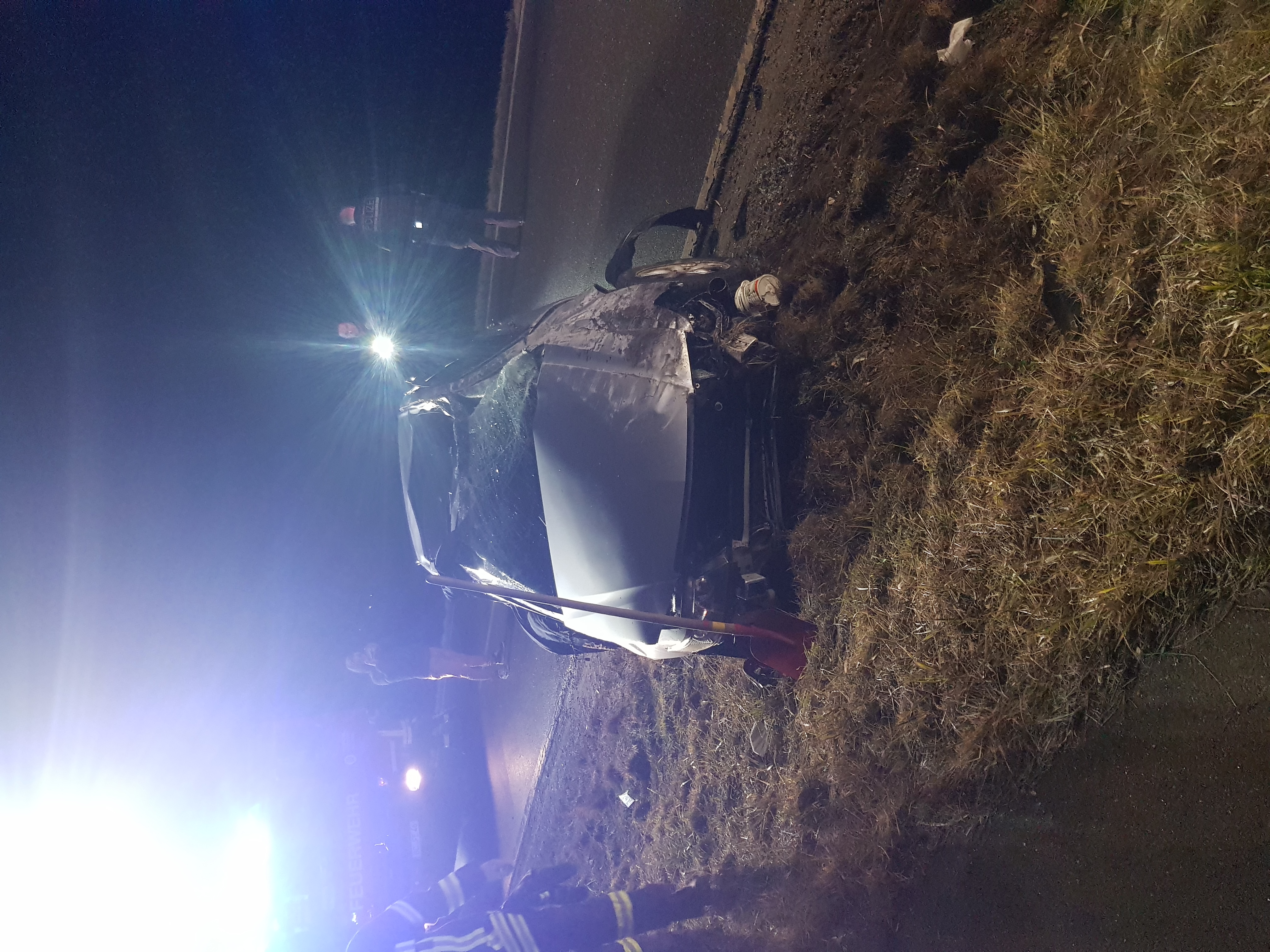 Hier war ein PKW von der Strasse abgekommen, hatte sich mehrfach überschlagen, bevor er dann wieder auf den Rädern zum Stehen kam.