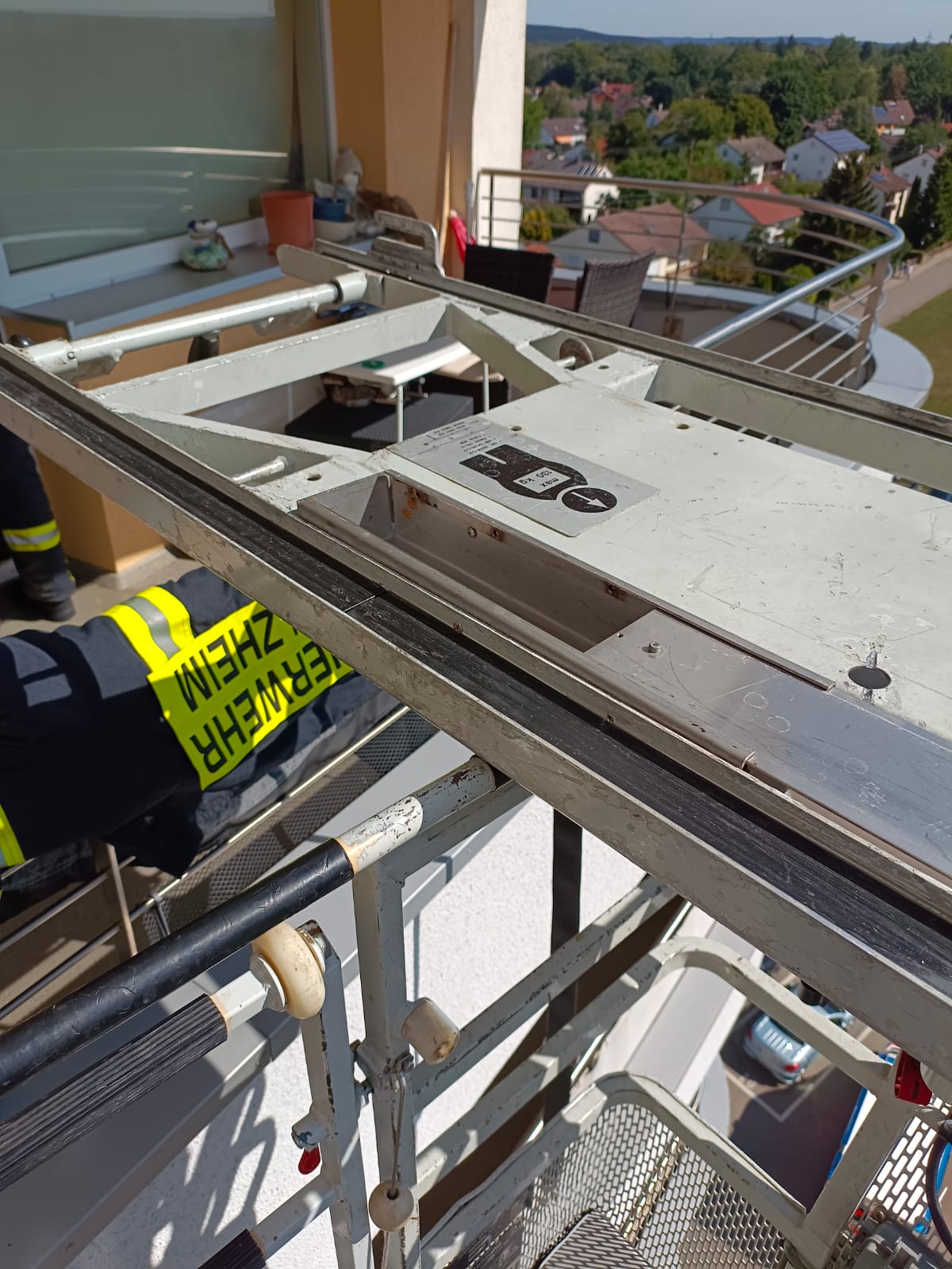 Wir beförderten die Person mit Hilfe der Krankentragenhalterung schonend zu Boden. Anschließend wurde diese dann vom Rettungsdienst in ein Krankenhaus gefahren.
