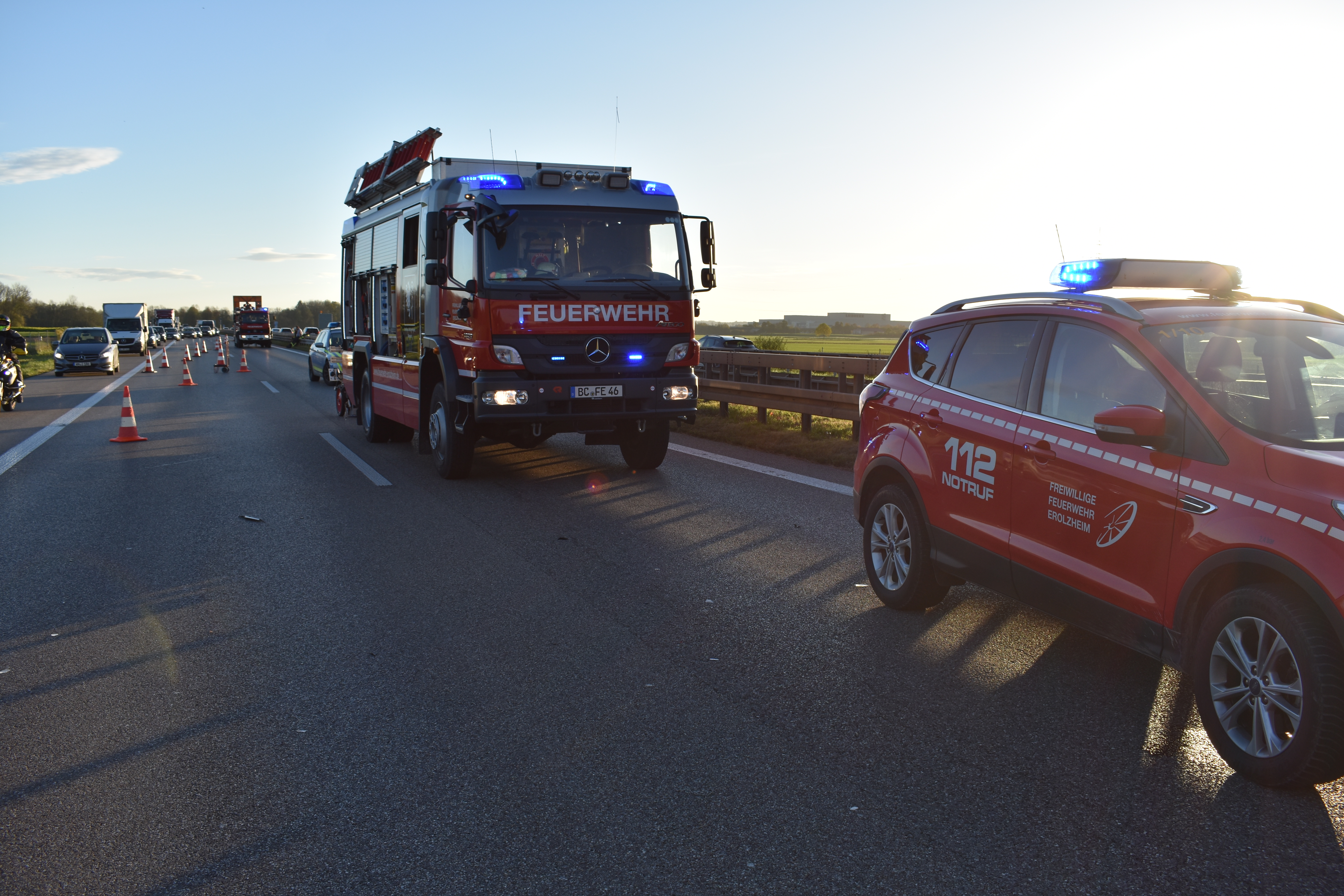 Aufgrund eines Auffahrunfalls auf der A7 zwischen Berkheim und Dettingen wurde heute Nachmittag die Feuerwehr Erolzheim alarmiert. Die Meldung lautete "VU3 - Verkehrsunfall mit eingeklemmter Person".