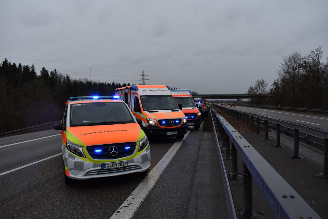 Heute wurde die Feuerwehr Erolzheim auf die Autobahn A7 zwischen die Anschlussstellen Berkheim und Dettingen alarmiert. Dort kam es zu einem Auffahrunfall mit zwei beteiligten Fahrzeugen. Beide Fahrzeuge standen auf der linken Fahrspur. Verletzt wurde glücklicherweise niemand. Wir sicherten die Unfallstelle ab und nahmen auslaufende Betriebsstoffe auf. Beide Pkw waren noch soweit fahrbereit, dass diese in Absprache mit der Autobahnpolizei zum nahegelgenen Parkplatz fahren konnten. Wir konnten daraufhin unsere Absperrung zurück bauen und wieder einrücken.