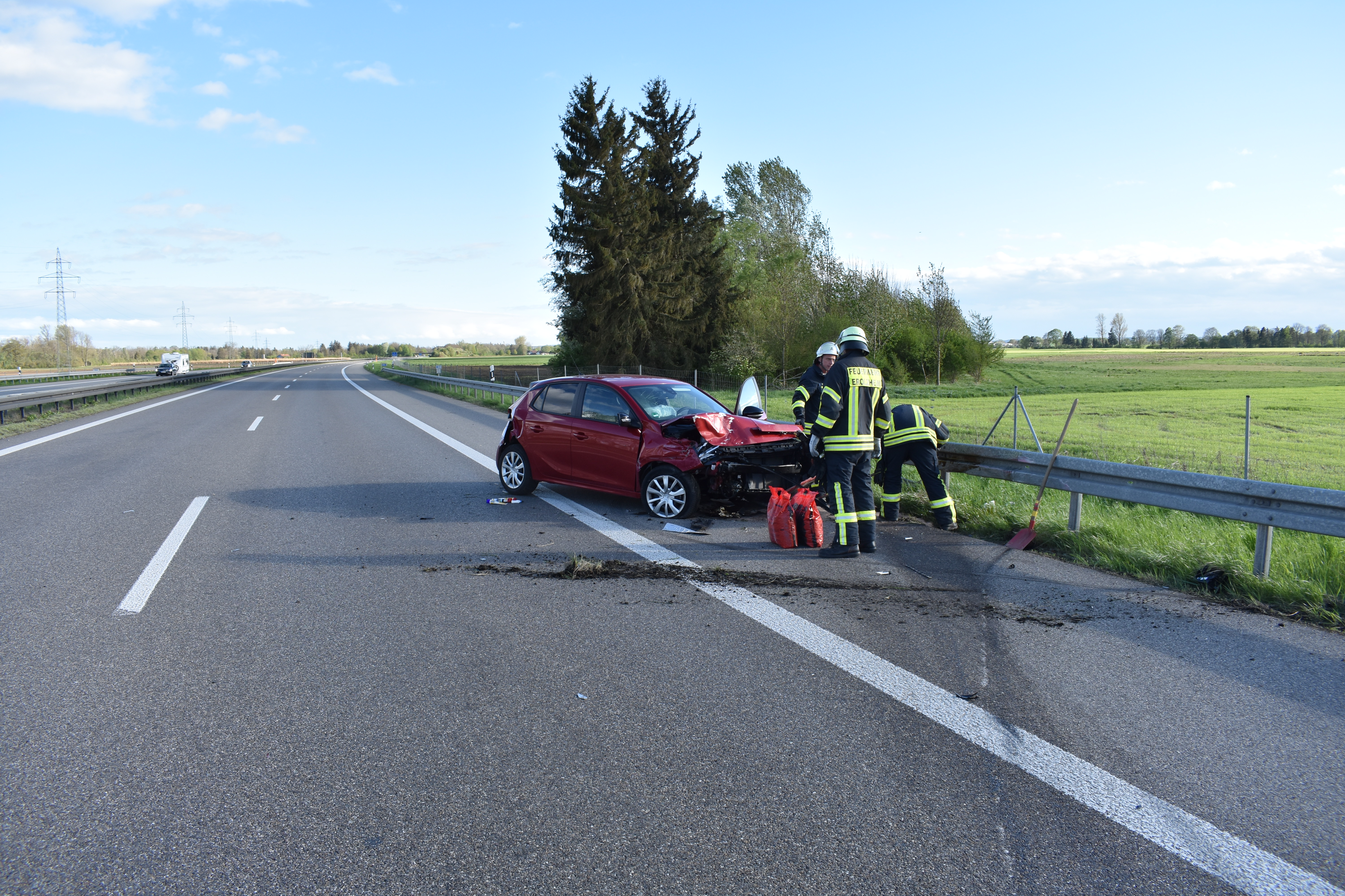 Zu einem schweren Auffahrunfall wurden wir heute gegen 18 Uhr auf die Autobahn zwischen Dettingen und Berkheim alarmiert. Bei unserem Eintreffen fanden wir zwei PKW vor, welche verunfallt waren und die Fahrbahn blockierten. Wir sicherten die Unfallstelle ab, betreuten die beiden verletzten Personen bis zum Eintreffen des Rettungsdienstes und nahmen anschließend auslaufende Betriebsstoffe auf. Zudem unterstützten wir den Abschleppdienst beim Verladen der beiden Unfallfahrzeuge. Nachdem der Rettungsdienst abgerückt war und beide PKWs verladen waren, nahmen wir unsere Absperrung zurück und rückten wieder ein.