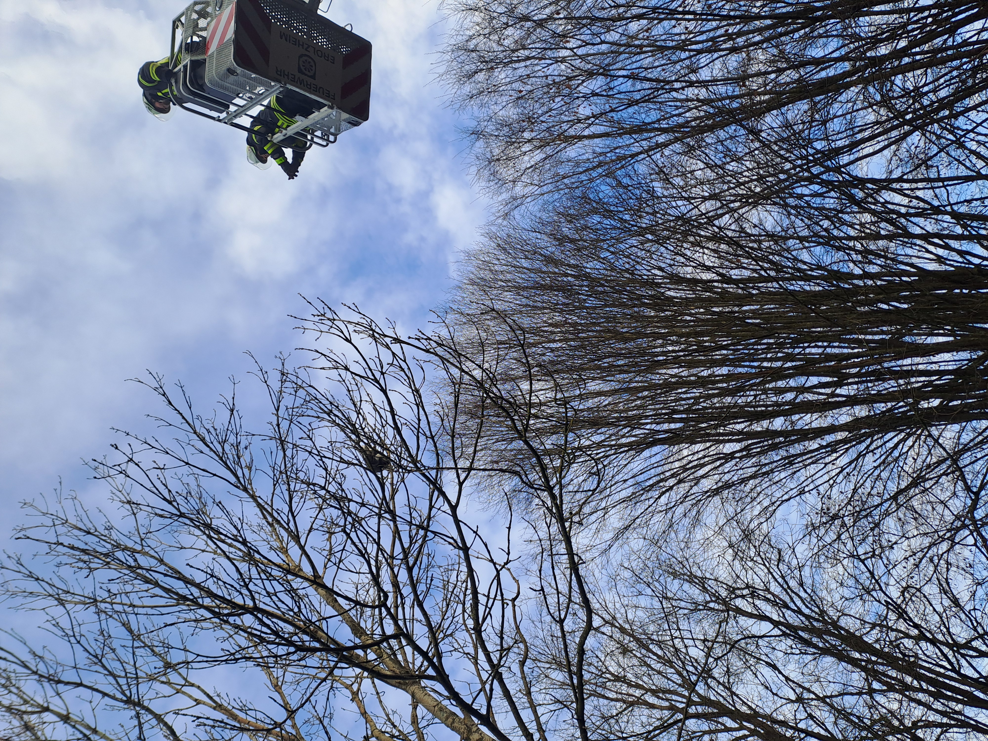 Wir brachten das Tier mit Hilfe der Drehleiter sicher zu Boden. Da kein Besitzer vor Ort war, entließen wir die Katze in die Natur.
