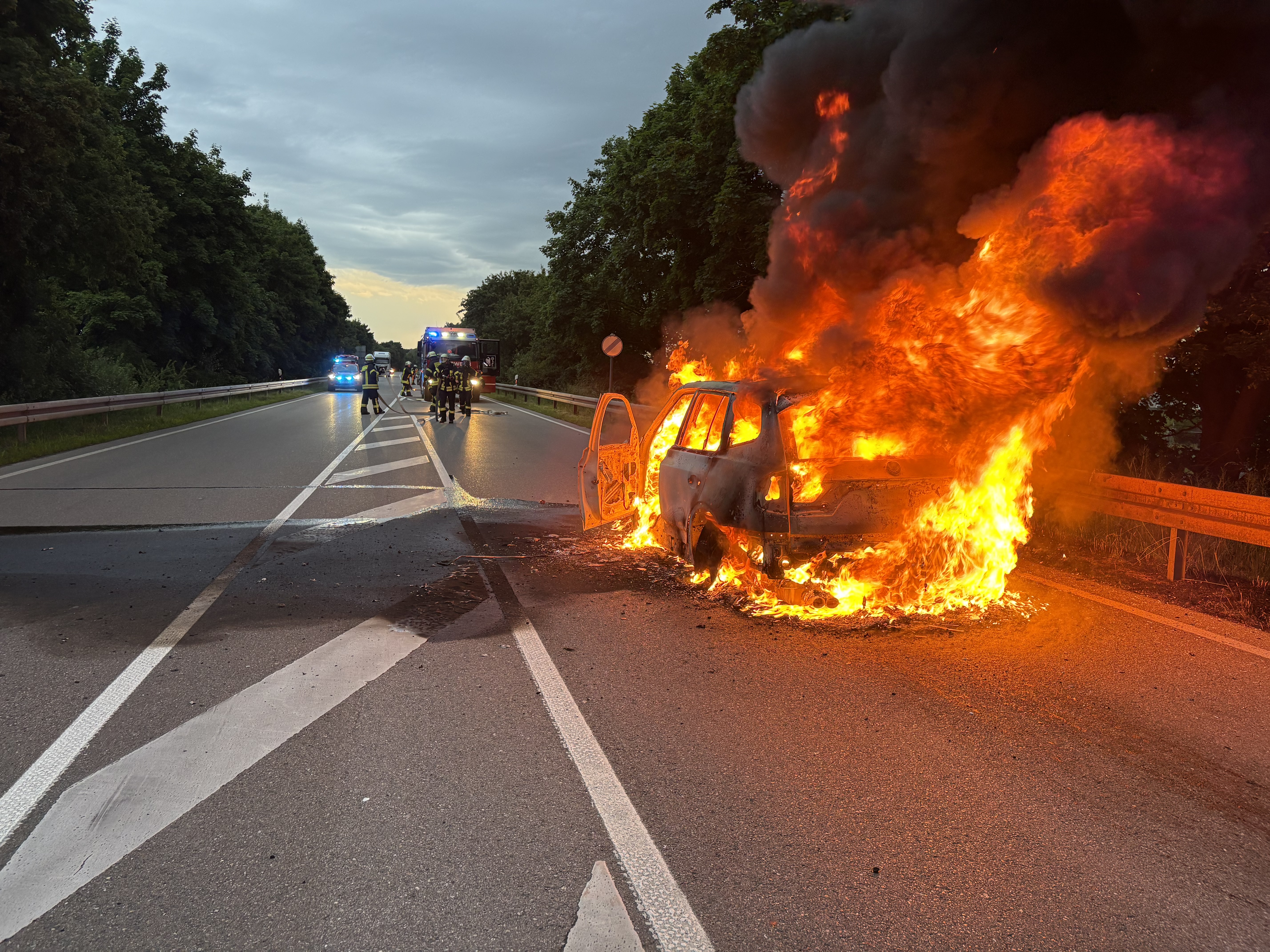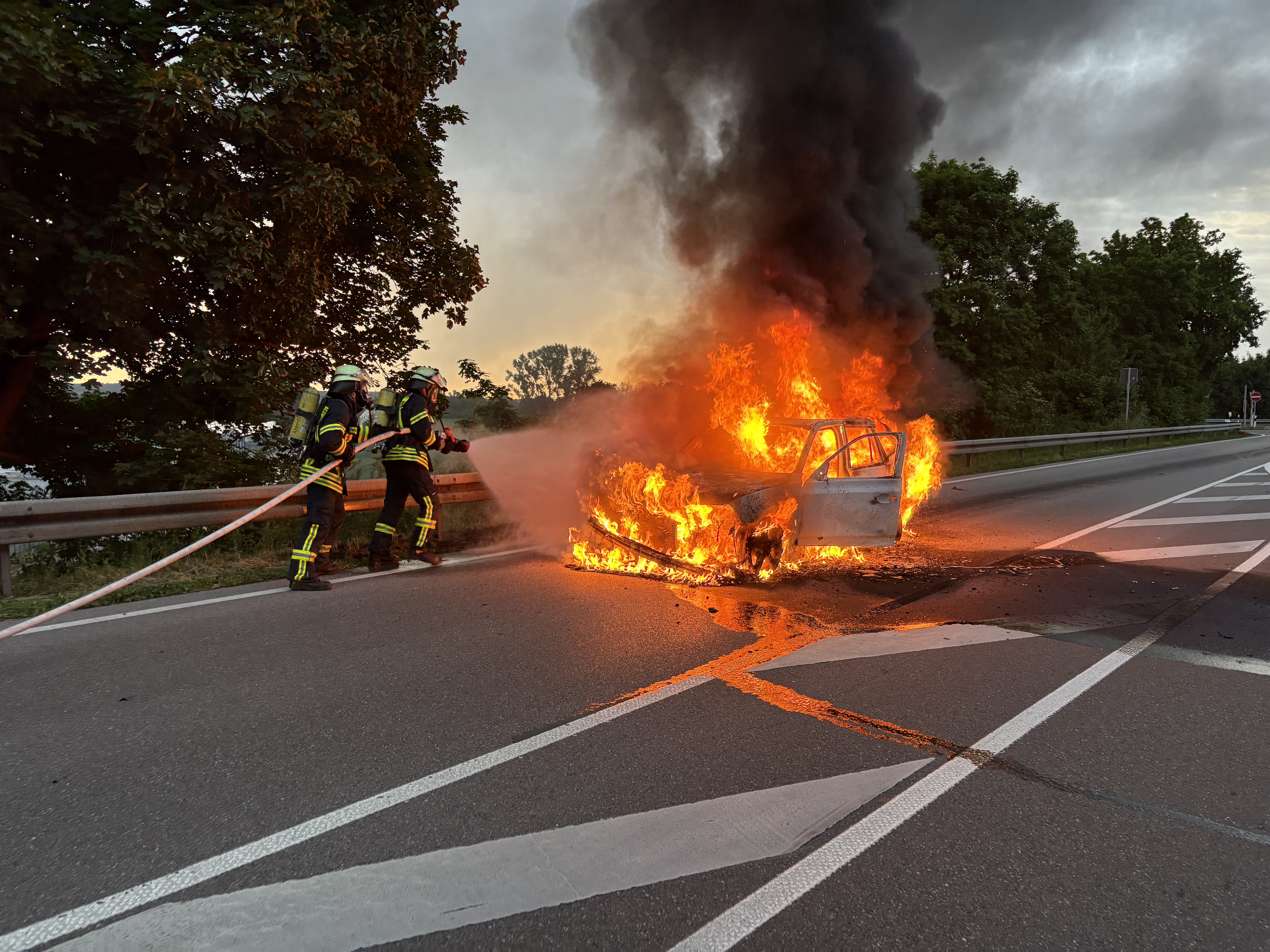 Ein Pkw Brand kurz vor der Autobahn A7 wurde der Integrierten Leitstelle in Biberach am heutigen Abend gemeldet.