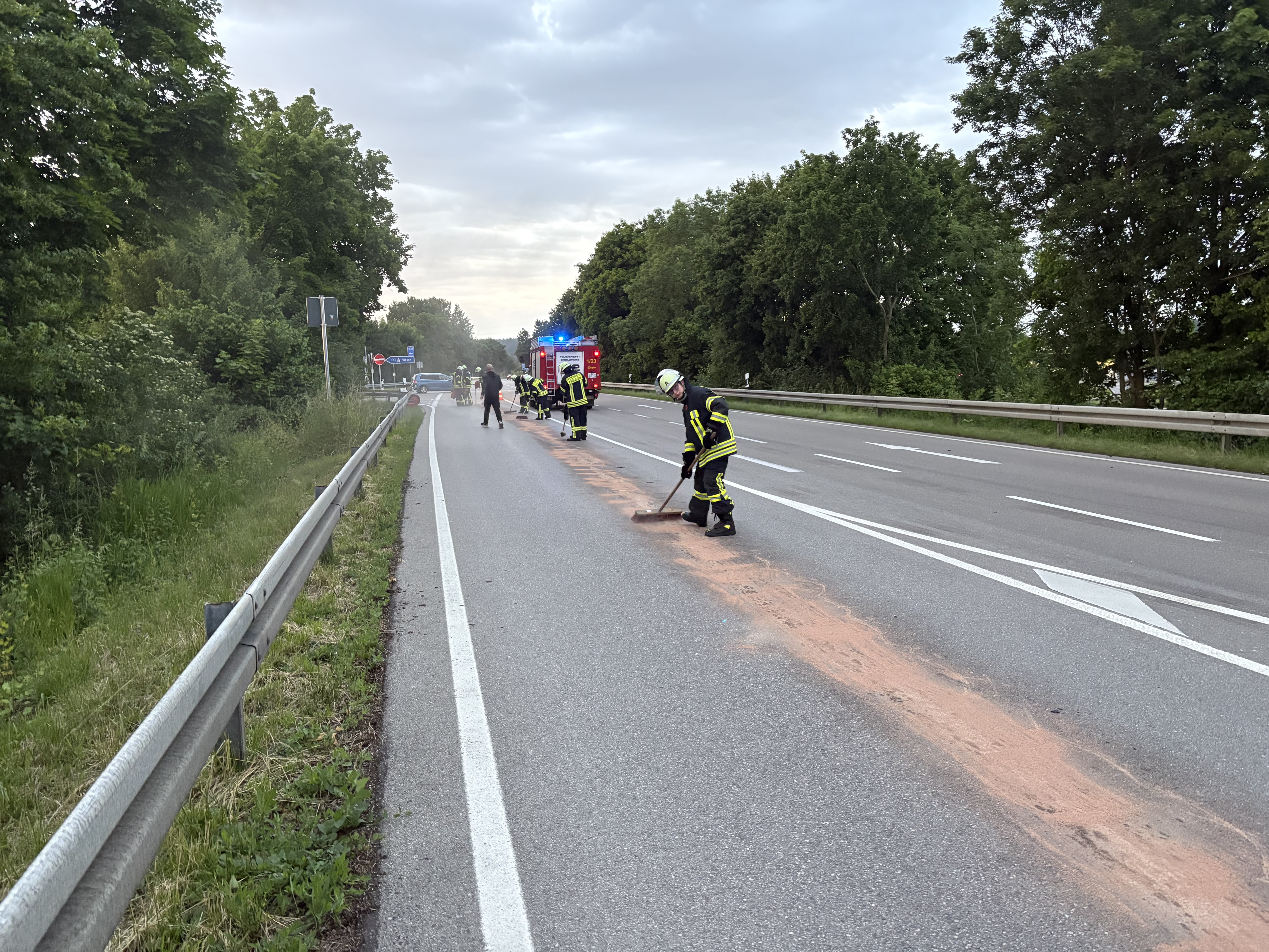 Weiter war eine Ölspur durch das Fahrzeug verursacht worden, welche ebenfalls gebunden wurde.