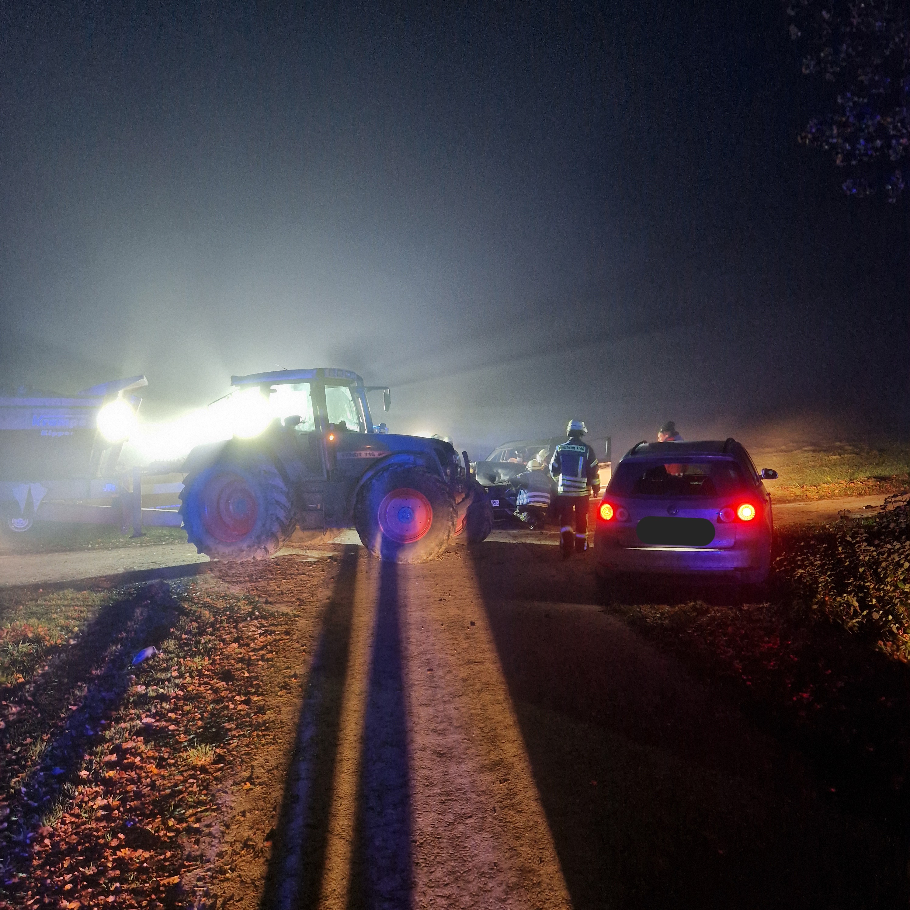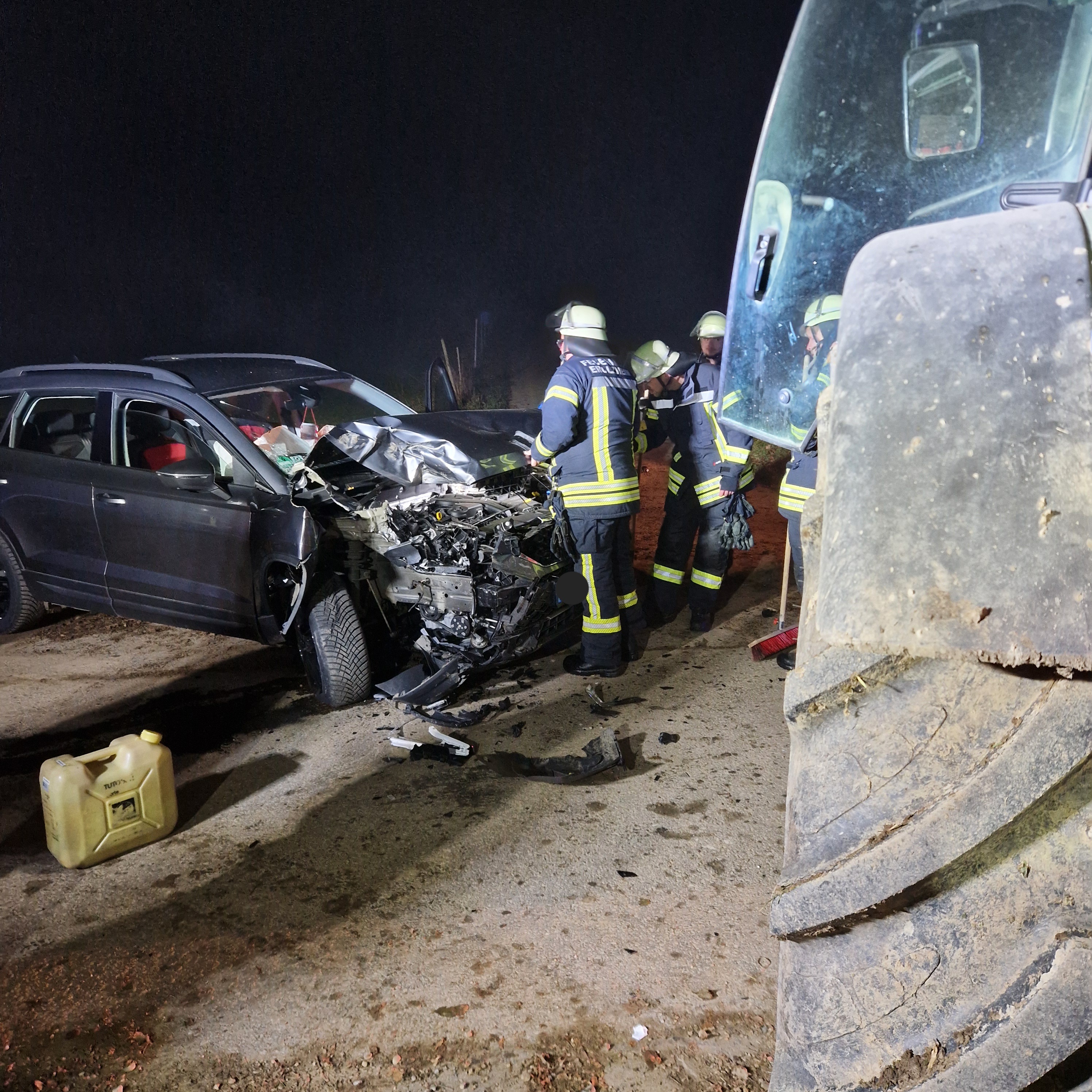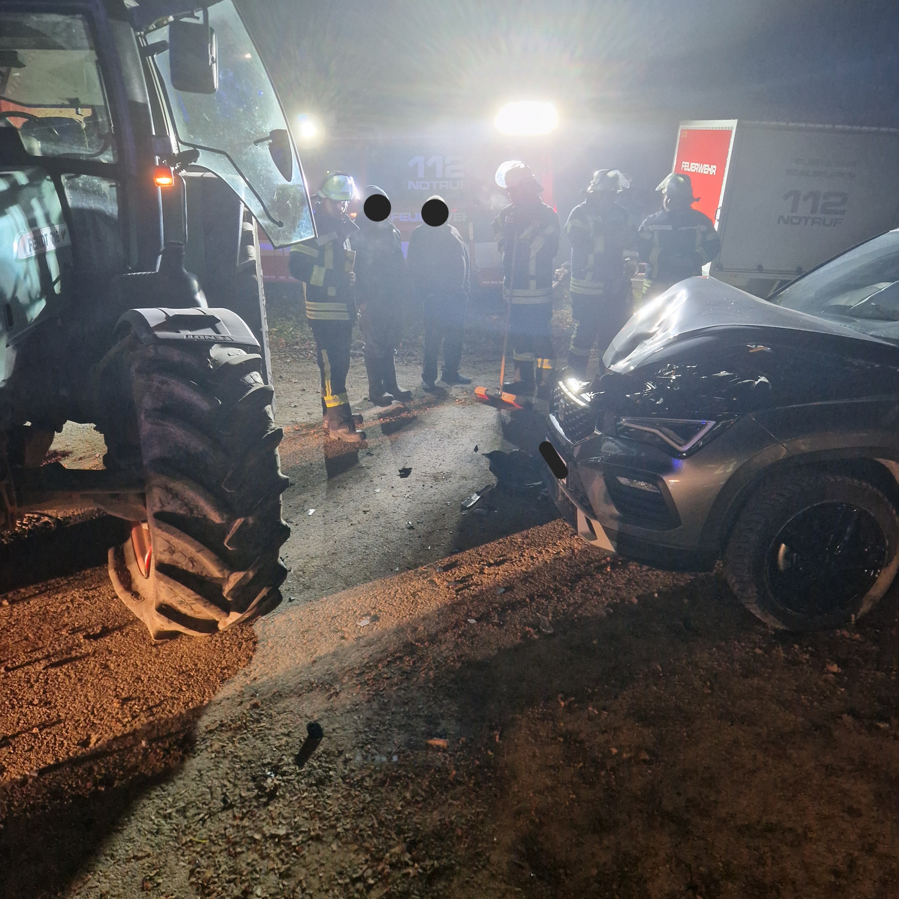Vor Ort konnte ein Verkehrsunfall zwischen einem Traktor und einem PKW mit auslaufenden Betriebsstoffen festgestellt werden. Wir sicherten die Unfallstelle ab, leuchteten diese aus und Banden auslaufende Betriebstoffe. Anschließend konnte die Einsatzstelle an die Polizei übergeben werden.