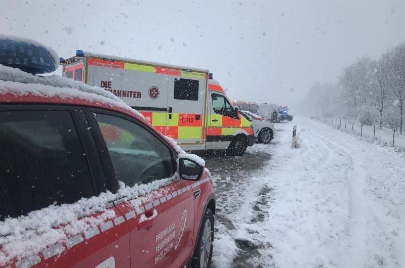 sich drei Kilometer nördlich auf der Autobahn in einer Ausfahrt eine Ölspur